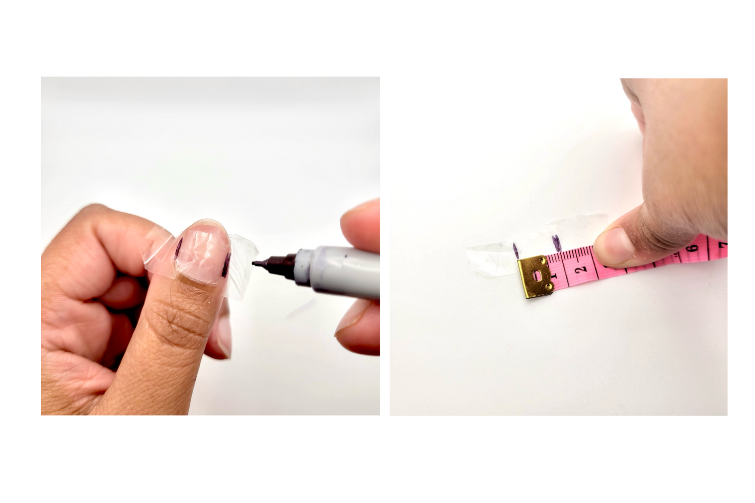 - Mark the widest points of your nail with a pen.